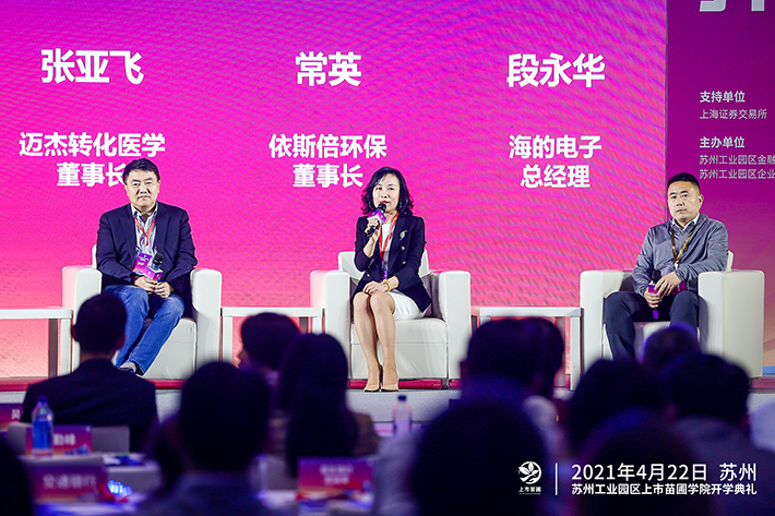 2021年4月22日,由上海证券交易所支持,苏州工业园区金融发展和风险防范局、苏州工业园区企业发展服务中心主办的上市苗圃学院2021年开学典礼在凯悦酒店隆重举办,苏州依斯倍环保装备科技有限公司董事长常英女士作为校友嘉宾出席此次典礼。